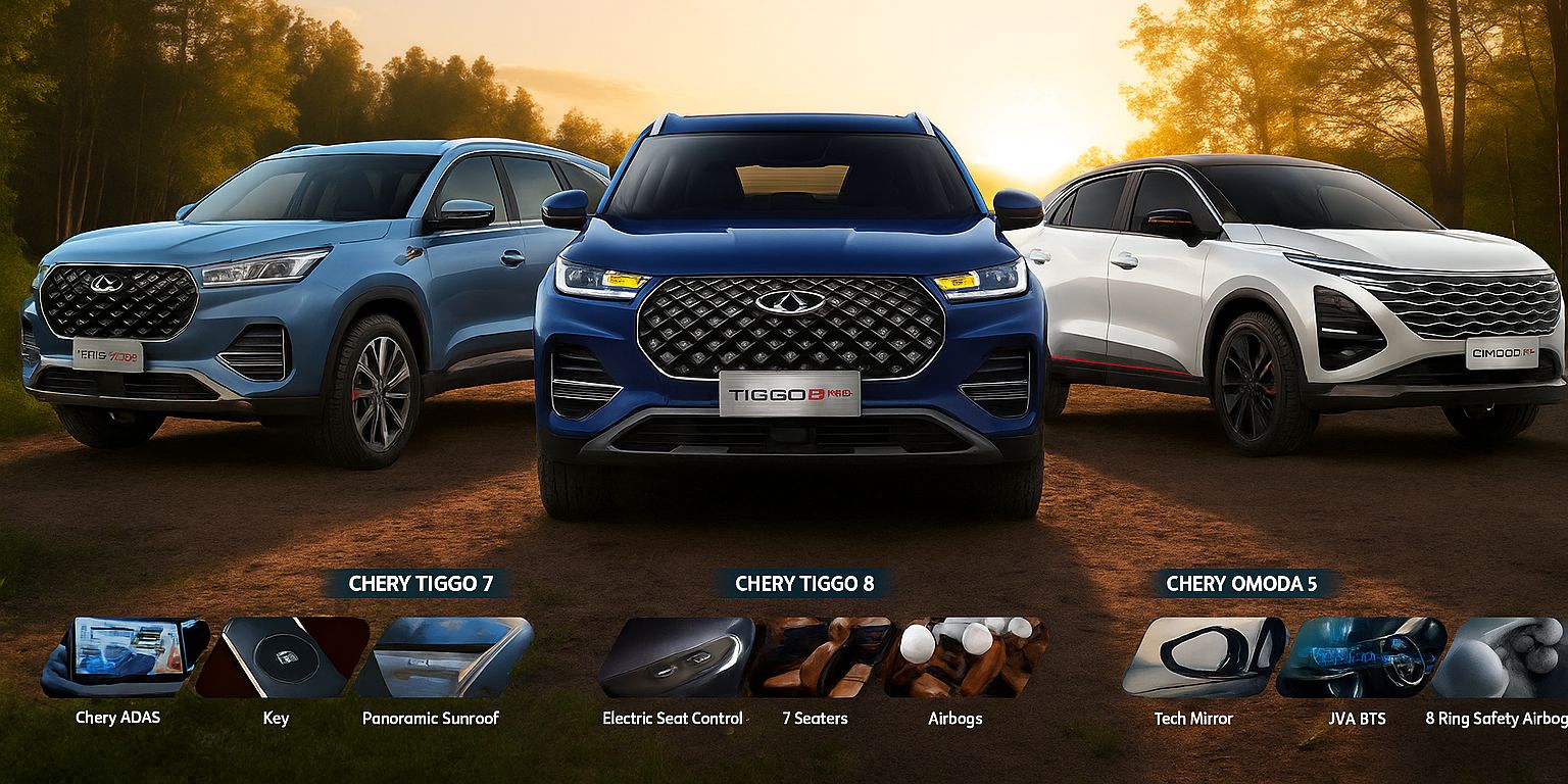 Nikmati pengalaman berkendara yang luar biasa dengan mobil Chery. Dengan teknologi terbaru dan design yang stylish dan futuristik, Chery Omoda dan Tiggo memberikan kenyamanan, kecanggihan dan performa terbaik untuk anda.